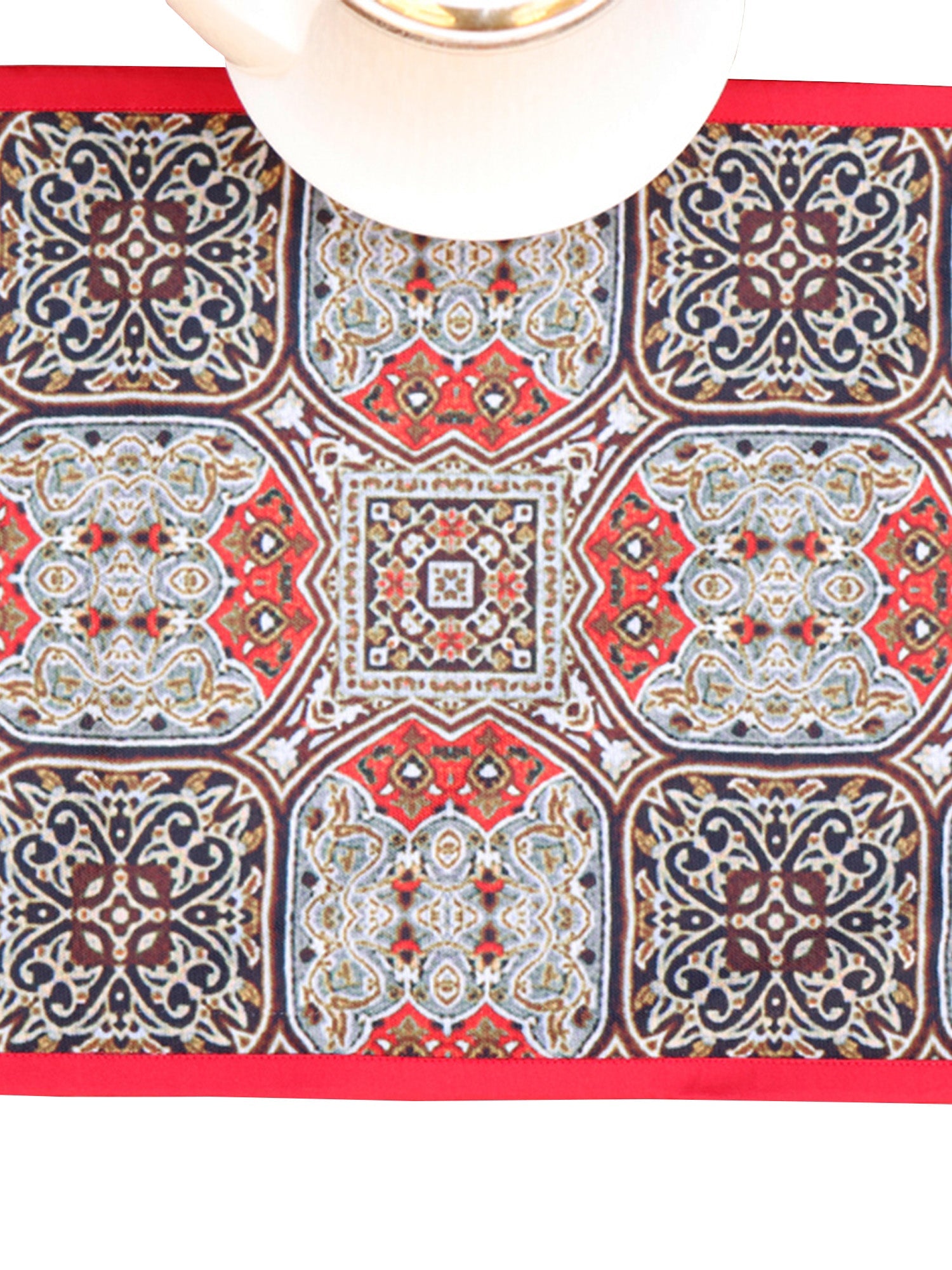 Digital print Grey / Red With Flat Piping Table Runner