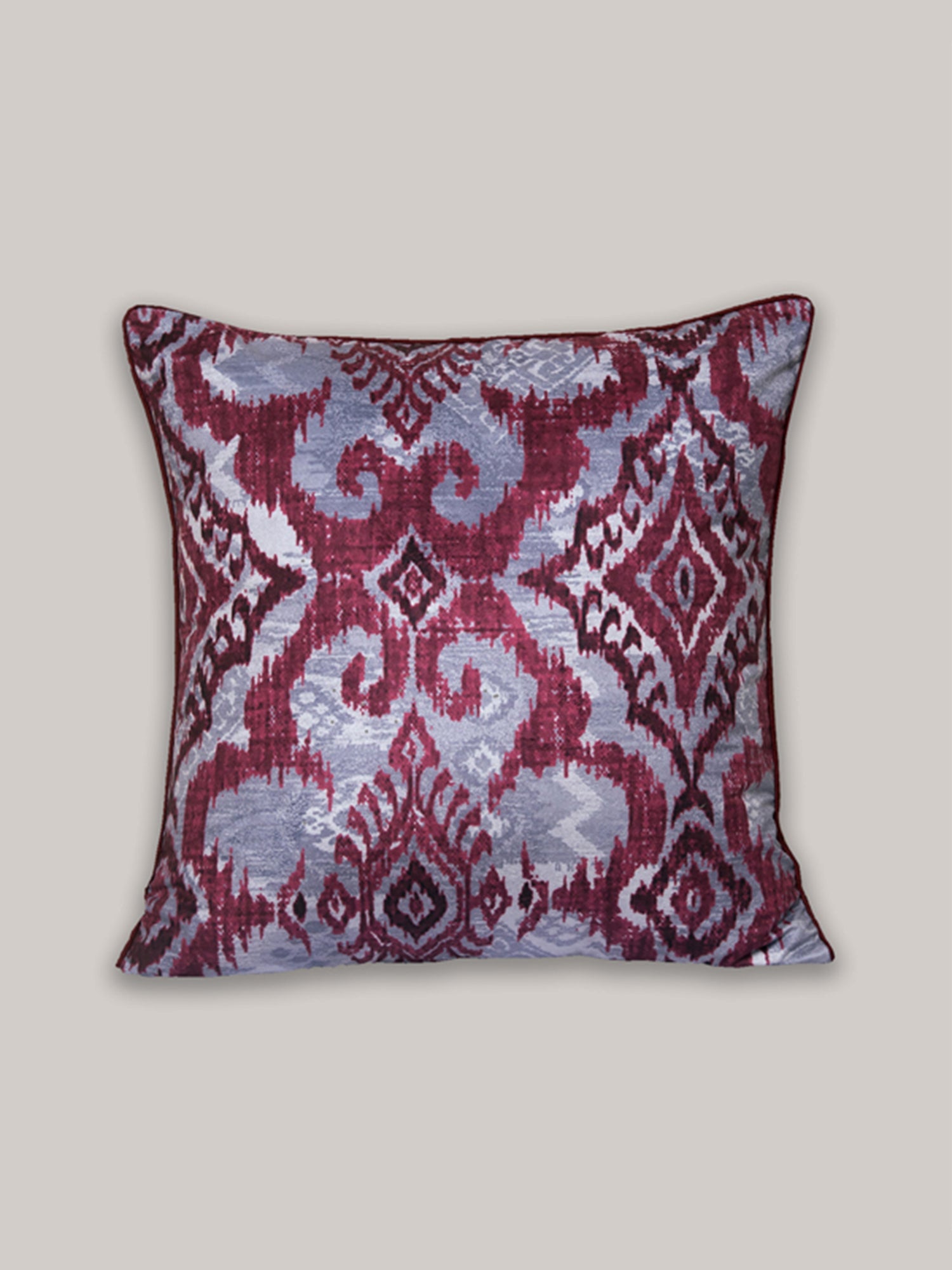 Cushion Cover Velvet Printed Ikat Maroon - 20"X20"
