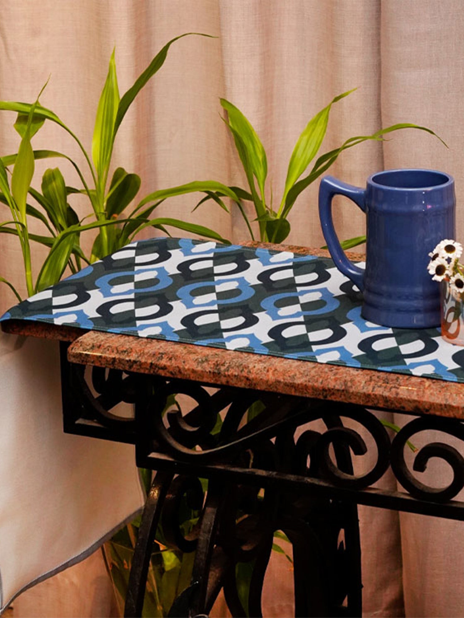 The geometric patterns on this poly canvas dining table runner for living room are inspired by the ogee design. The soothing tones of blue and green make this table runner for 4 seater / 6 seater dining table unique and elegant. Dress your dining room with this beautiful piece for a touch of elegant beauty!