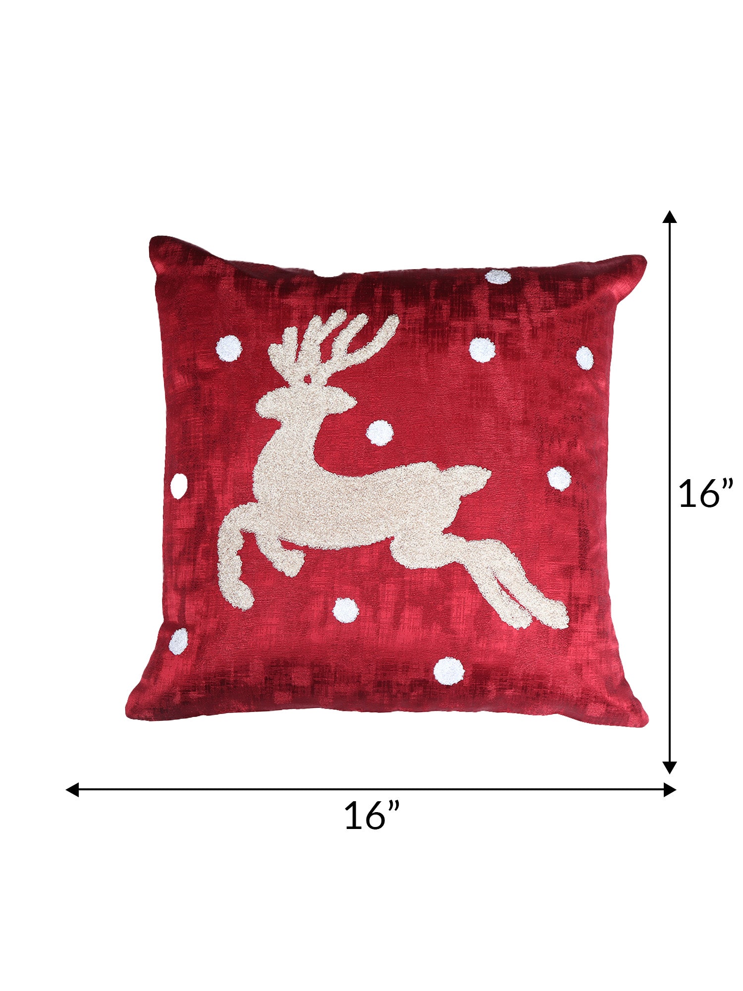 ZEBA World Christmas Reindeer Cushion Cover for Sofa, Bed | Riendeer in Towel Embroidery - Polyester | Dual Tone Red - 16x16in (40x40cm) (Pack of 1)