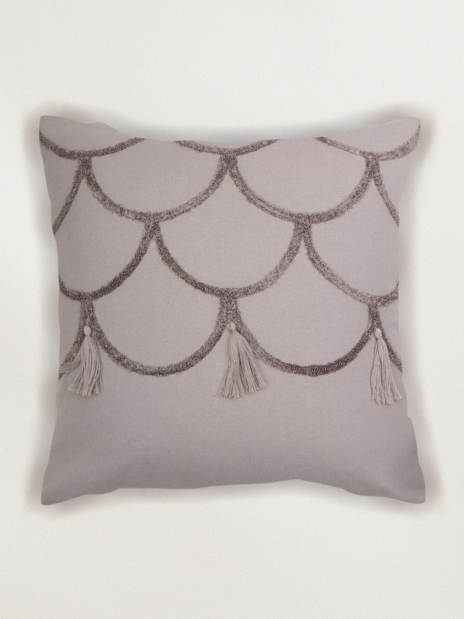 Cushion Cover Cotton Blend Floral Aari and Towel Textured Embroidery with Tassels Grey - 16inches X 16inches