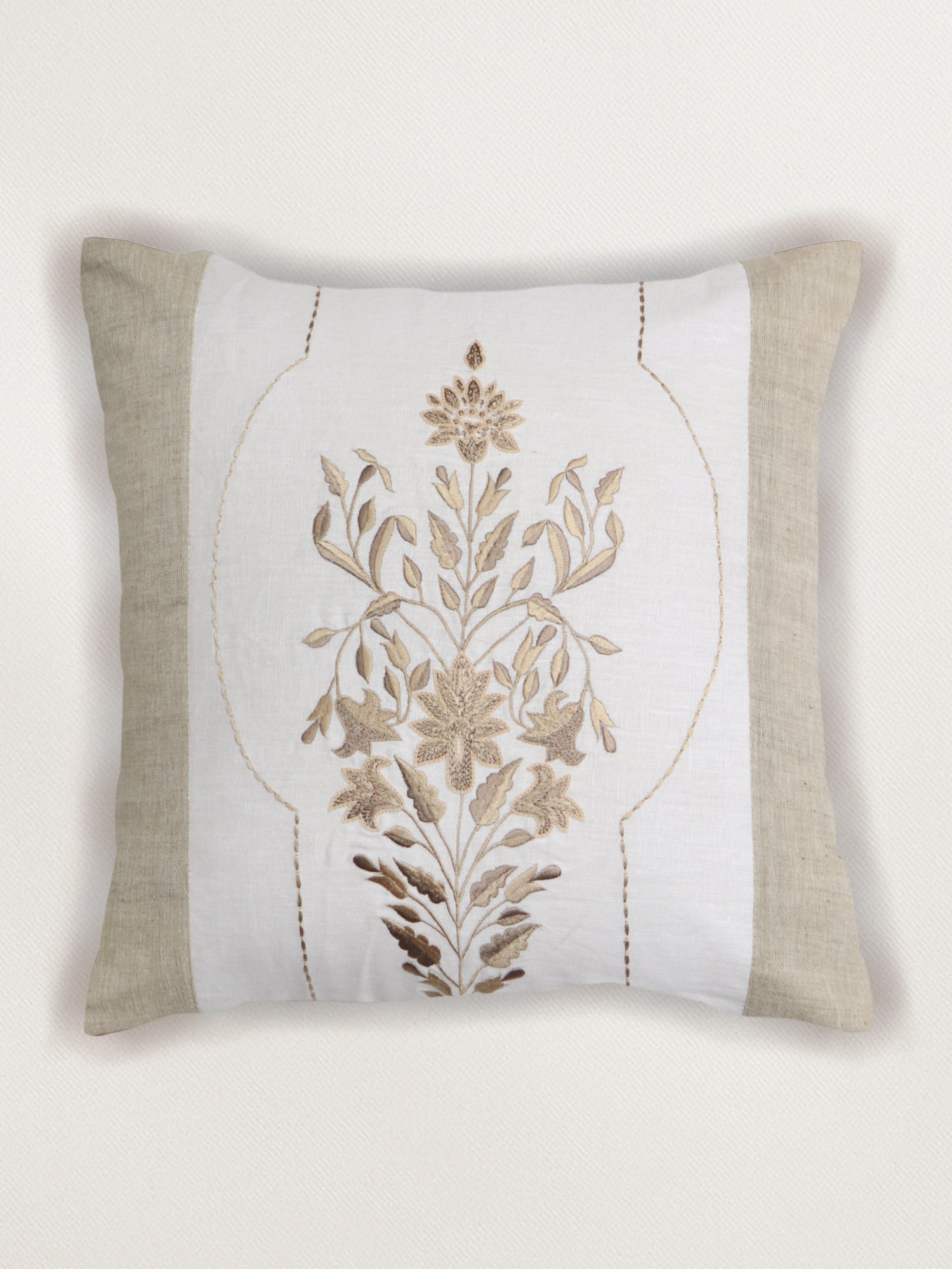 Cushion Cover Cotton Floral Aari and Hand Embroidery Beige - 16inches X 16inches