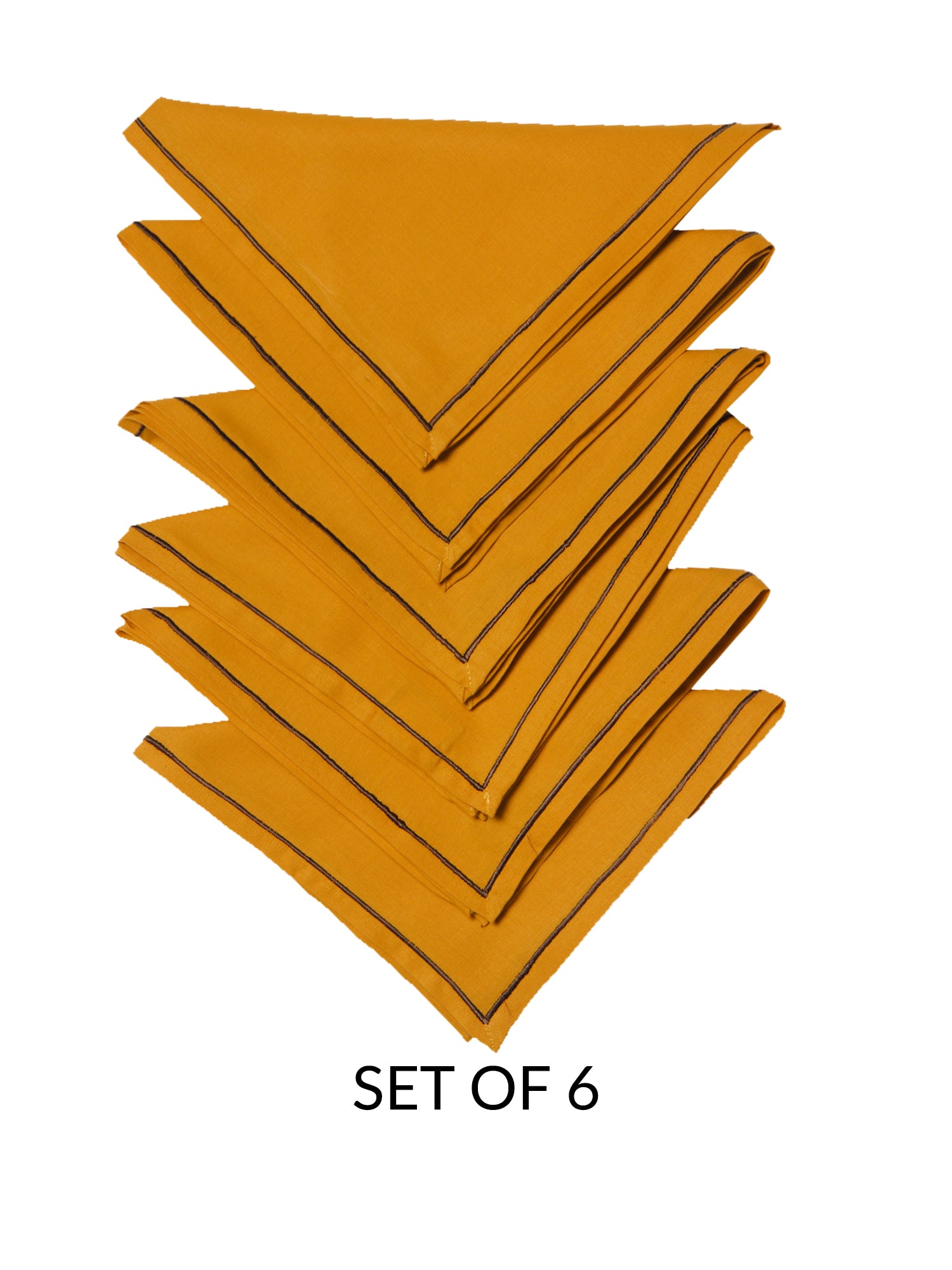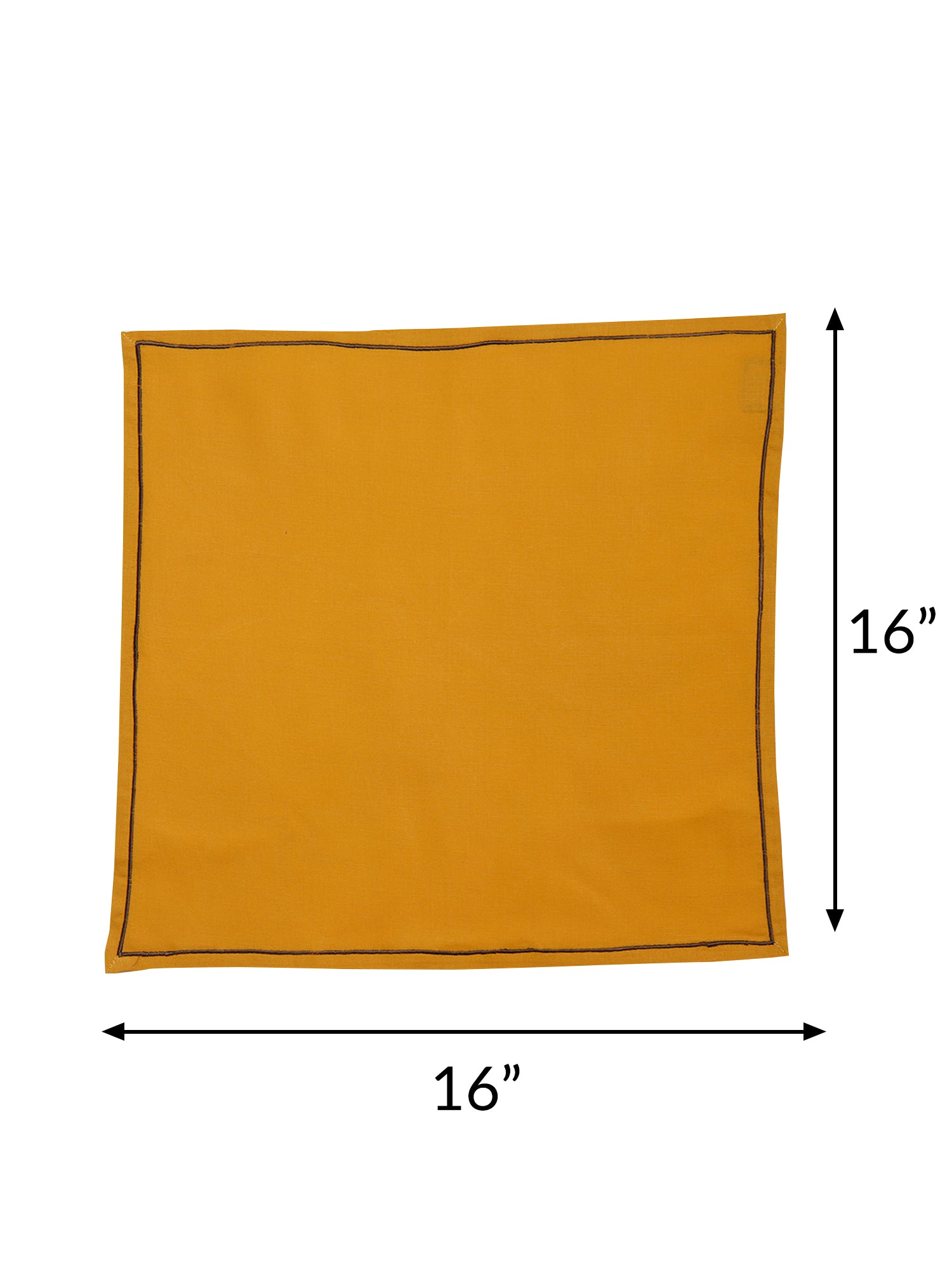 Zeba World Dinner Napkins 6pcs Set Cotton, Embroidered Napkins for Dinner table Mustard - 16"x16"(40x40cms)