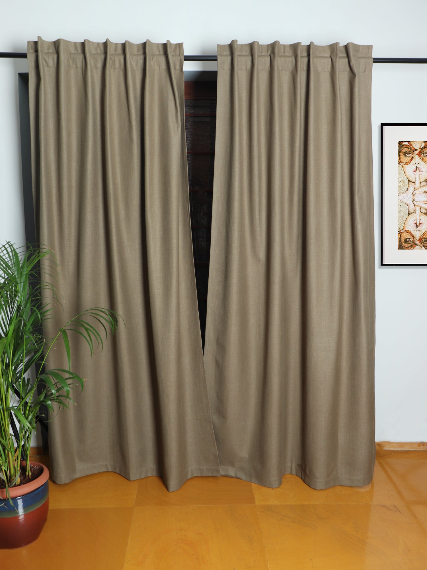 Door Curtain Cotton Blend Solid Brown - 52" X 84" (Hidden Loop)