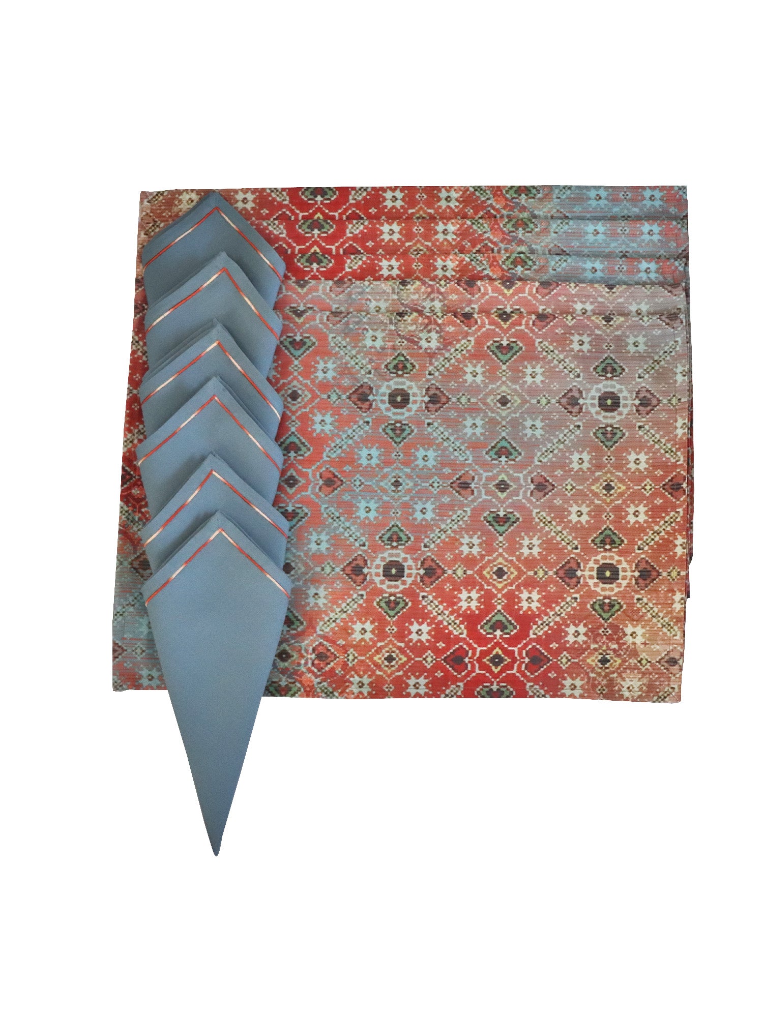 Printed Placemat/Tablemats and Napkins Set Polycanvas - Multi Colour Set of 6 Mats 13x19 in & 6 Napkins 16x16in (33x48 cms, 40x40 cms)