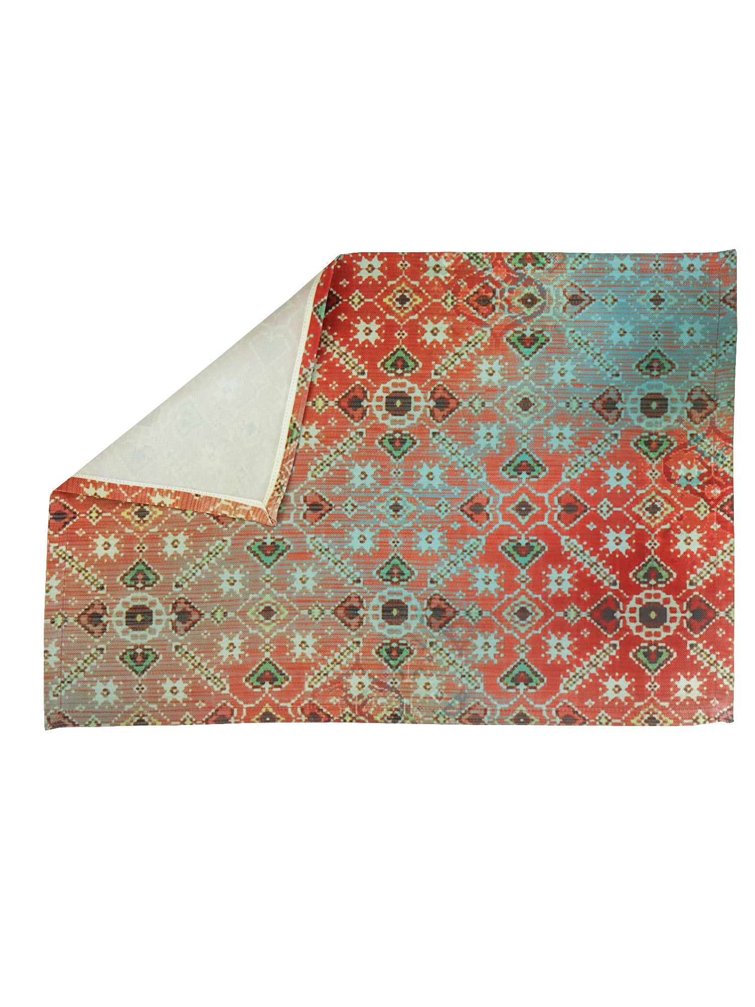 Revitalize your dining space with our vibrant multicolored printed mat and napkins set. Crafted from durable polycanvas fabric, the mats measure 13x19 inches, and the napkins are 16x16 inches. This lively collection effortlessly brings a burst of color and energy to your table setting, combining style with practicality. Transform your meals into a visually appealing experience with this dynamic and versatile ensemble.