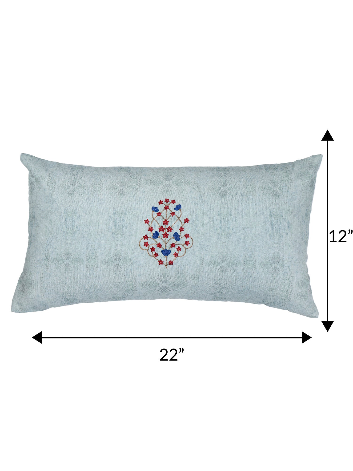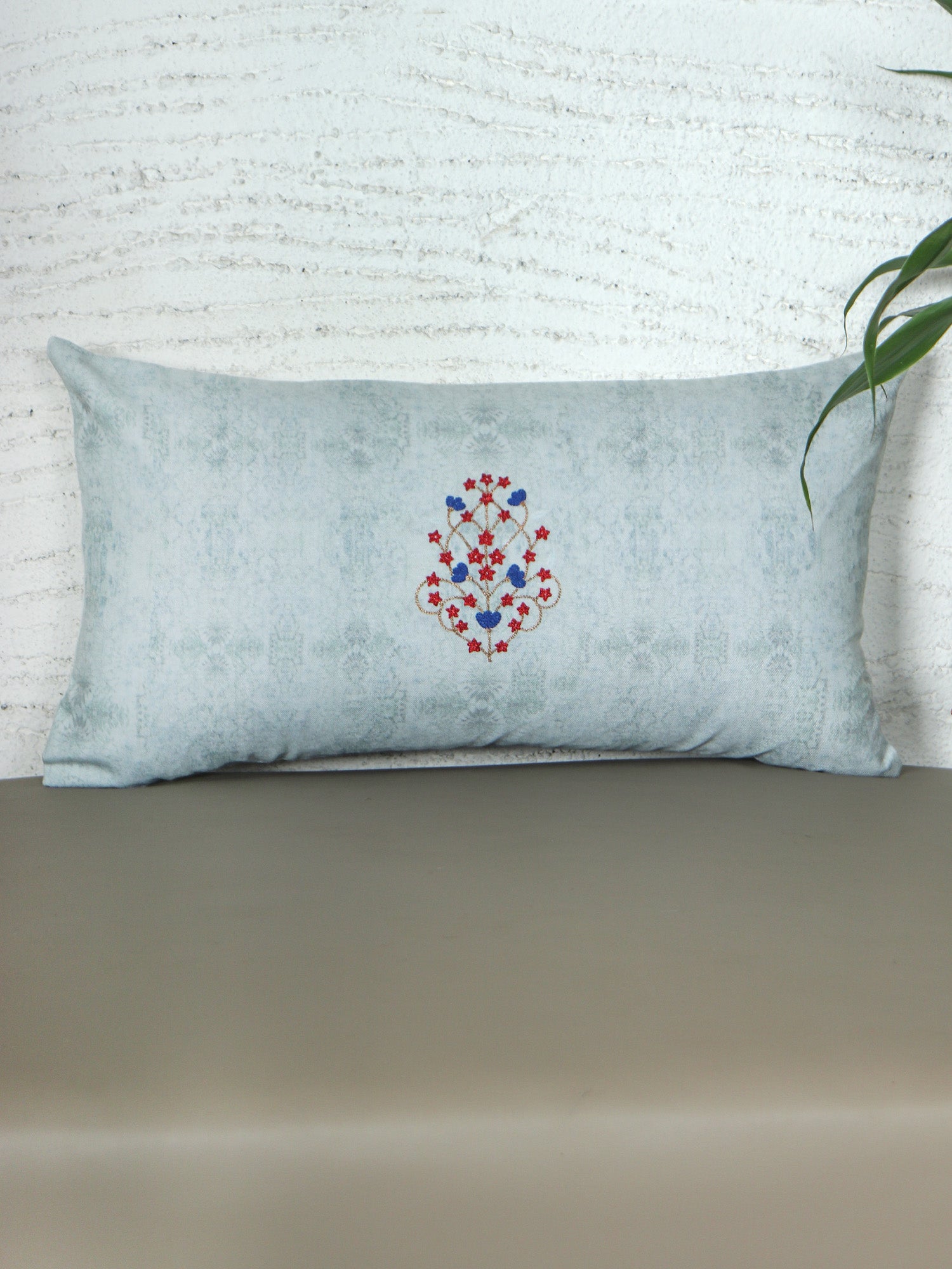 ZEBA World Rectangular Cushion Cover for Sofa - Lumbar Cushion | Hand Embroidery on Floral Print - Polycanvas | Mint - 12x22in(30x55cm) (Pack of 1)