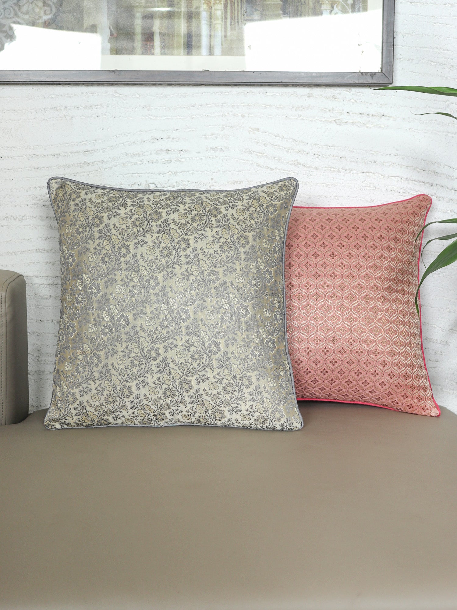 ZEBA World Square Cushion Cover for Sofa, Bed | Banarasi Brocade Silk - Floral Weave with Cord Piping| Multi - 16x16in(40x40cm) (Pack of 2)