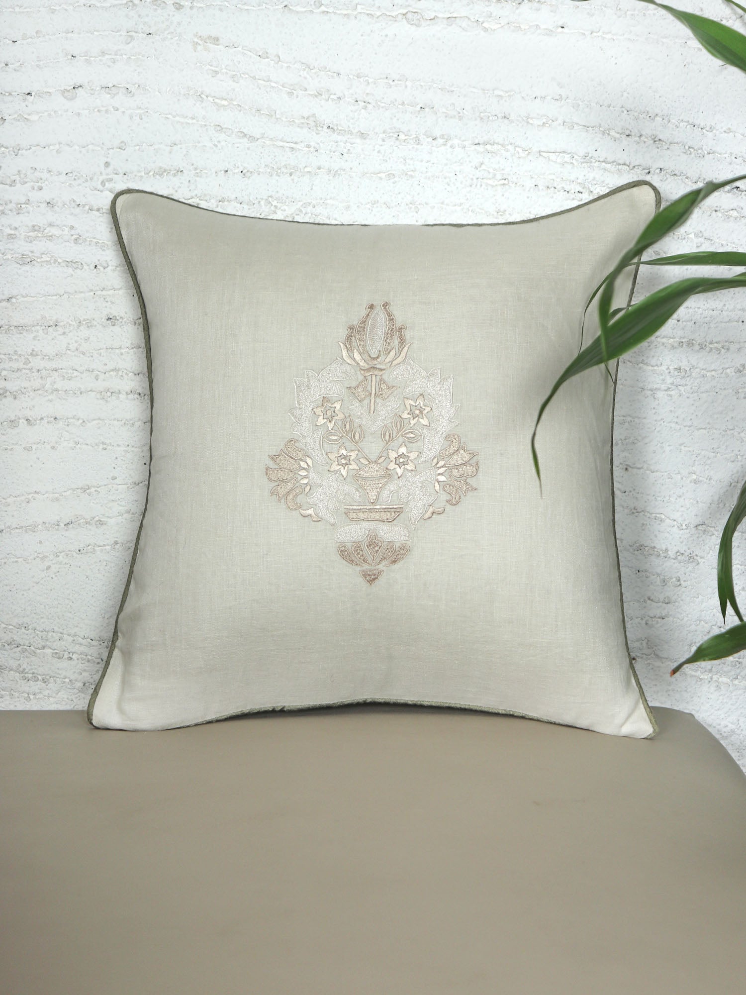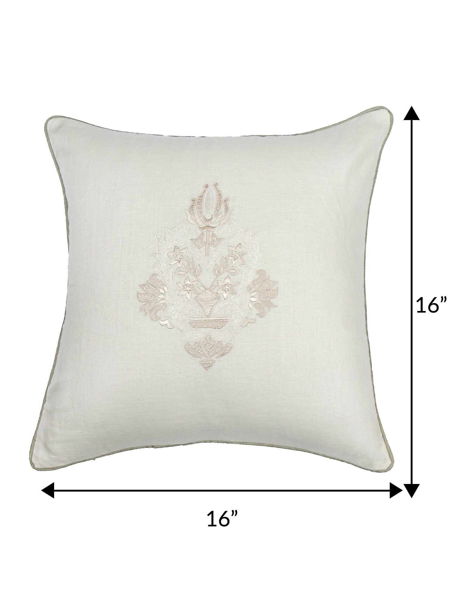 Bringing to you this Cotton Blend Off-White Floral Embroidered Cushion Cover with Cord Piping, a perfect blend of elegance and attention to detail for your home decor. Crafted from high-quality cotton blend fabric in a soothing off-white hue, this cushion cover provides a serene and versatile addition to your living space. The exquisite floral embroidery, delicately stitched with precision, adds a timeless touch of nature's beauty to your decor. What sets this cover apart is the addition of cord piping, enhancing its refined and polished appearance.