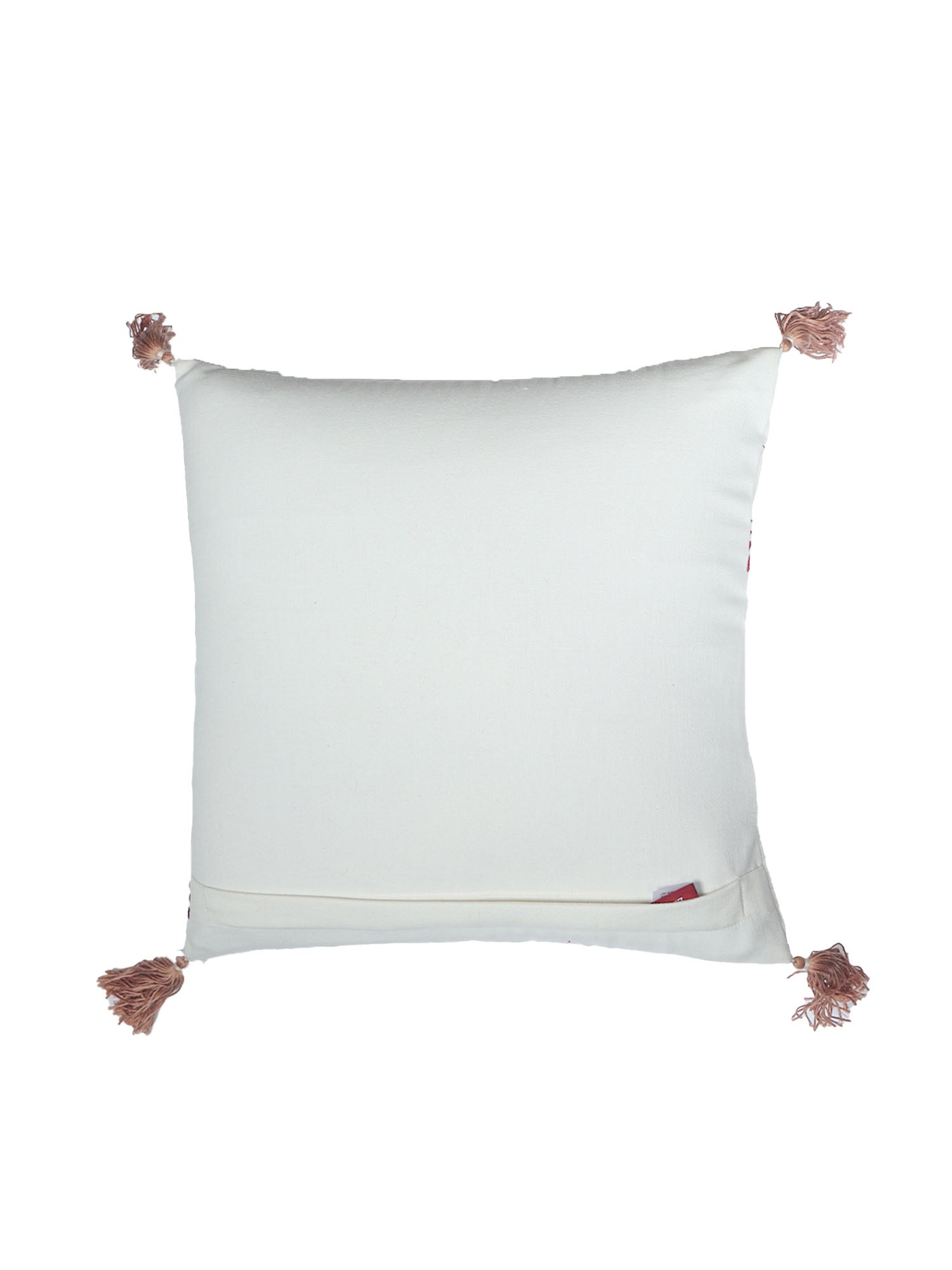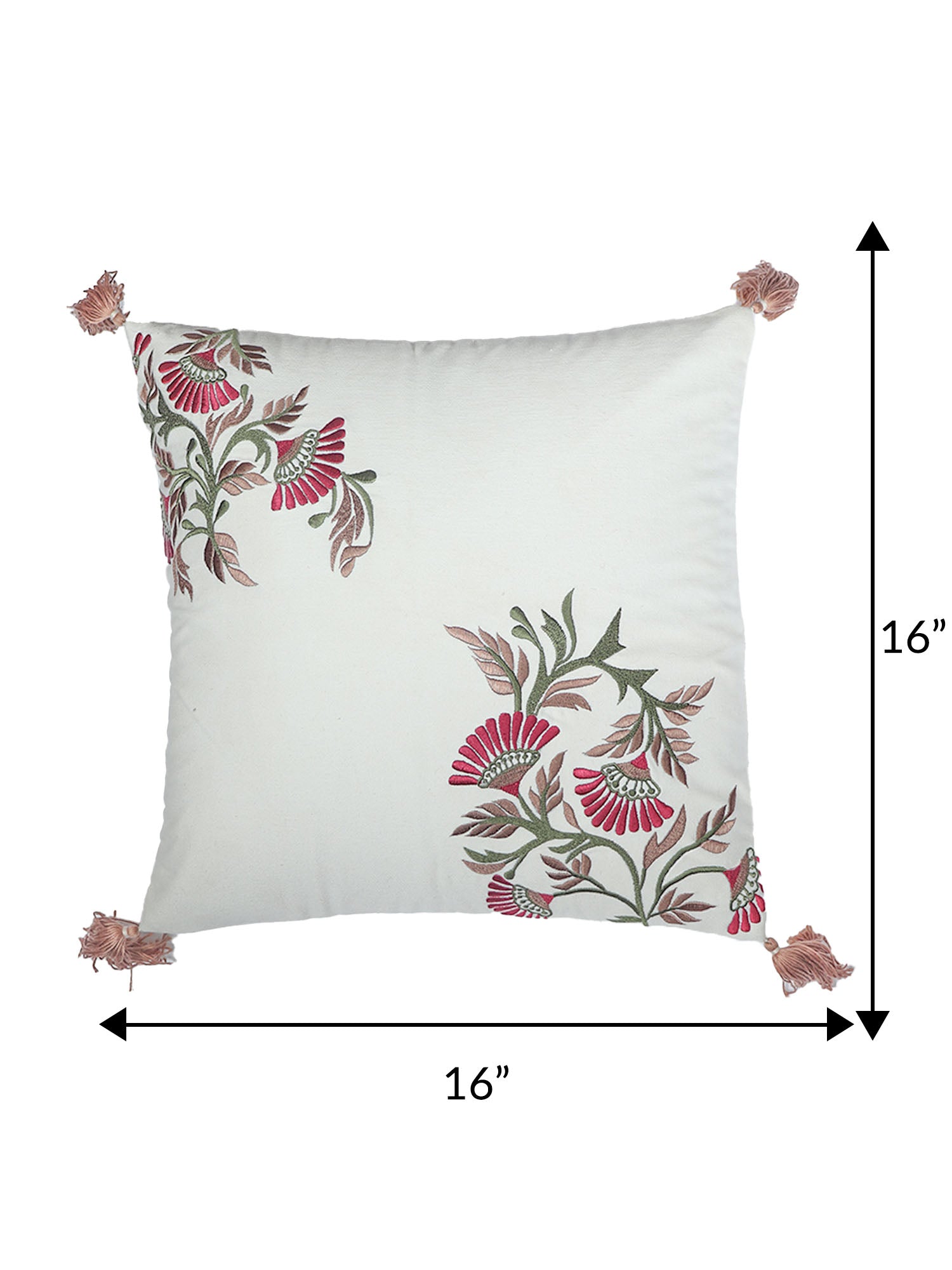 ZEBA World Square Cushion Cover for Sofa, Bed | Floral Hand Embroidery with Tassels - Cotton | Offwhite - 16x16in(40x40cm) (Pack of 1)