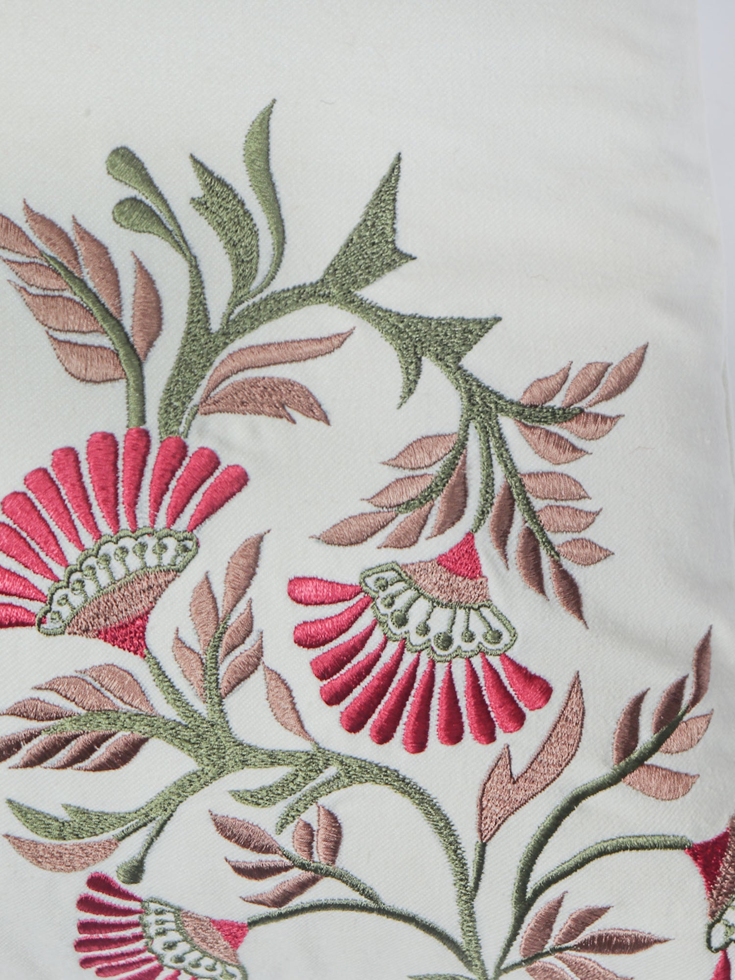 Introducing our Off-White Cotton Cushion Cover with Floral Embroidery and Tassels. Crafted for comfort and durability, its delicate charm best complements grey, beige, and mushroom sofas. Versatile and easy to maintain, it's the ideal choice to elevate your decor.