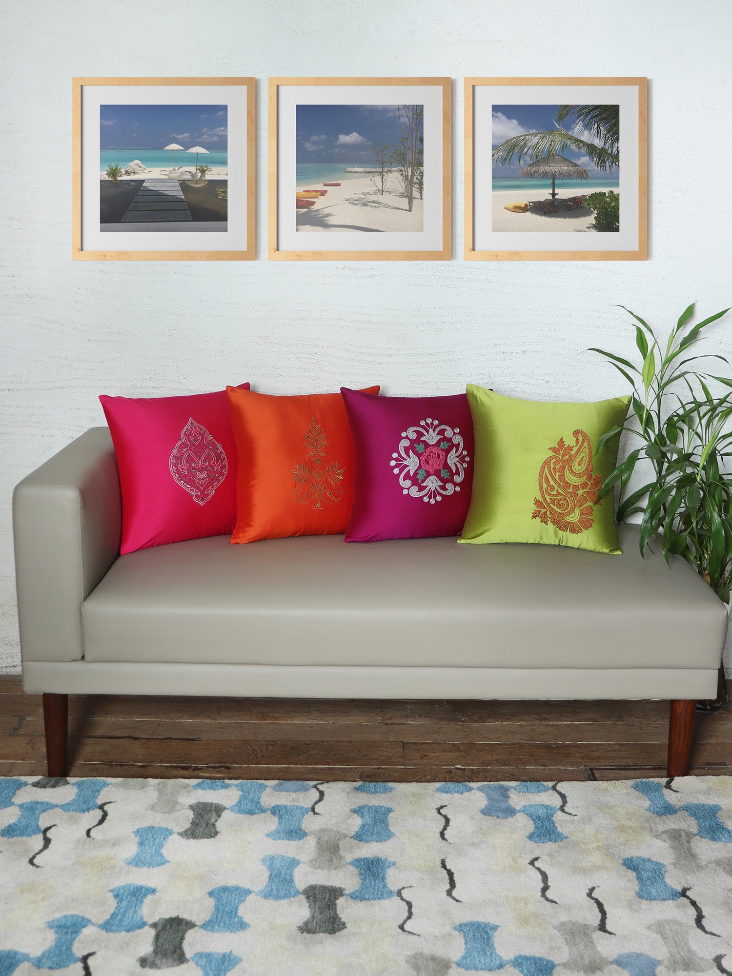 Introducing our Polyester Multicolor Cushion Cover Set of Four, a vibrant ensemble that effortlessly transforms your home decor. Crafted from high-quality polyester fabric, these covers feature a kaleidoscope of colors that add a dynamic and playful touch to your living space. The standout feature is the intricately embroidered motifs on each cover, showcasing meticulous craftsmanship and attention to detail across the set. Elevate your home decor with this thoughtfully coordinated cushion cover ensemble, where the fusion of colors and artisanal artistry adds a sense of personality and a burst of creativity to your interior.